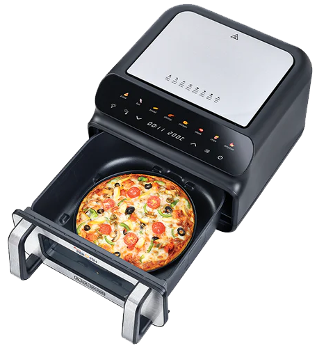 أما عشاق البيتزا، فسيحبون وجود صينية بيتزا بقطر 25 سم، تتيح لك تحضير بيتزا منزلية شهية بسهولة، مع إمكانية تجربة أنواع متعددة من الإضافات والجبن والقواعد، والحصول على نكهة مقرمشة كما في الأفران الاحترافية.