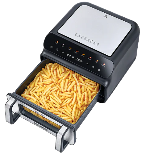 ولتسهيل المهام اليومية، يأتي الجهاز مع 8 برامج طهي مسبقة الضبط، مخصصة لتحضير مجموعة متنوعة من الوجبات الصحية قليلة الدهون بأقل جهد ممكن. مثل البطاطس المقلية، الدجاج، السمك، البيتزا، والمخبوزات، وغيرها – وكلها مصممة للحصول على أفضل نتائج باستخدام القليل جدًا من الزيت أو بدونه.