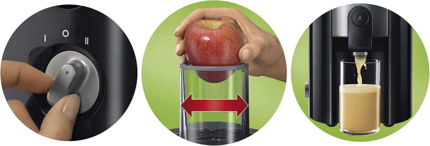 نظام العصير عالي الأداء، استمتع بجرعة الفيتامينات التي تحتاجها في الصباح الباكر بسرعة ودون بذل جهد إضافي. يعمل نظام العصير عالي الأداء على تحقيق أقصى استفادة من الفاكهة. يستغرق الأمر 15 ثانية فقط لتحضير كوب من العصير المنعش والصحي. العملية ليست سريعة فحسب، بل إنها مريحة وفعالة أيضًا: يسمح لك المحرك القوي ونظام التغذية التلقائي بتحضير عصير مثالي دون عناء.